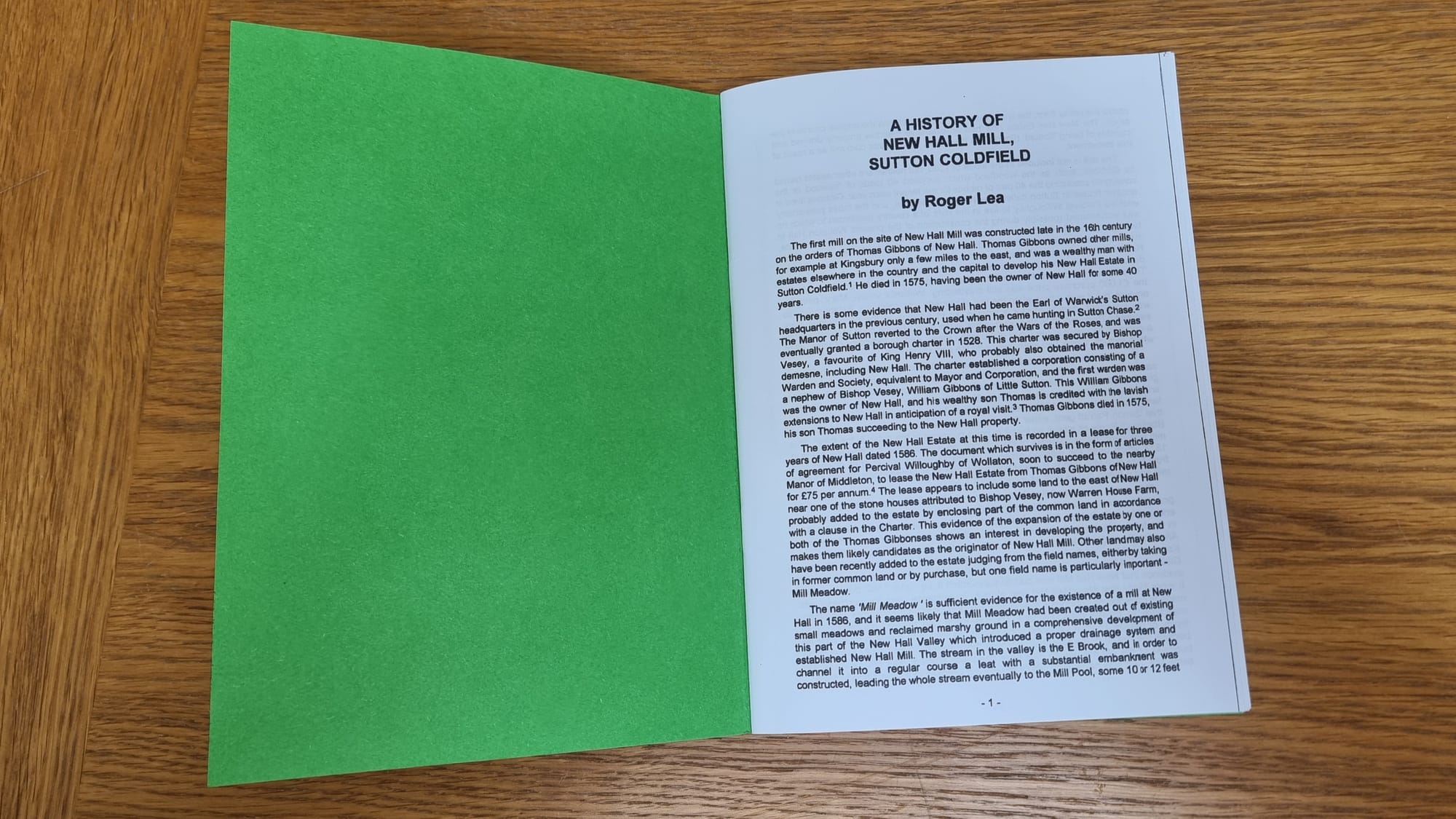 New Hall Mill Sutton Coldfield - the Green Book