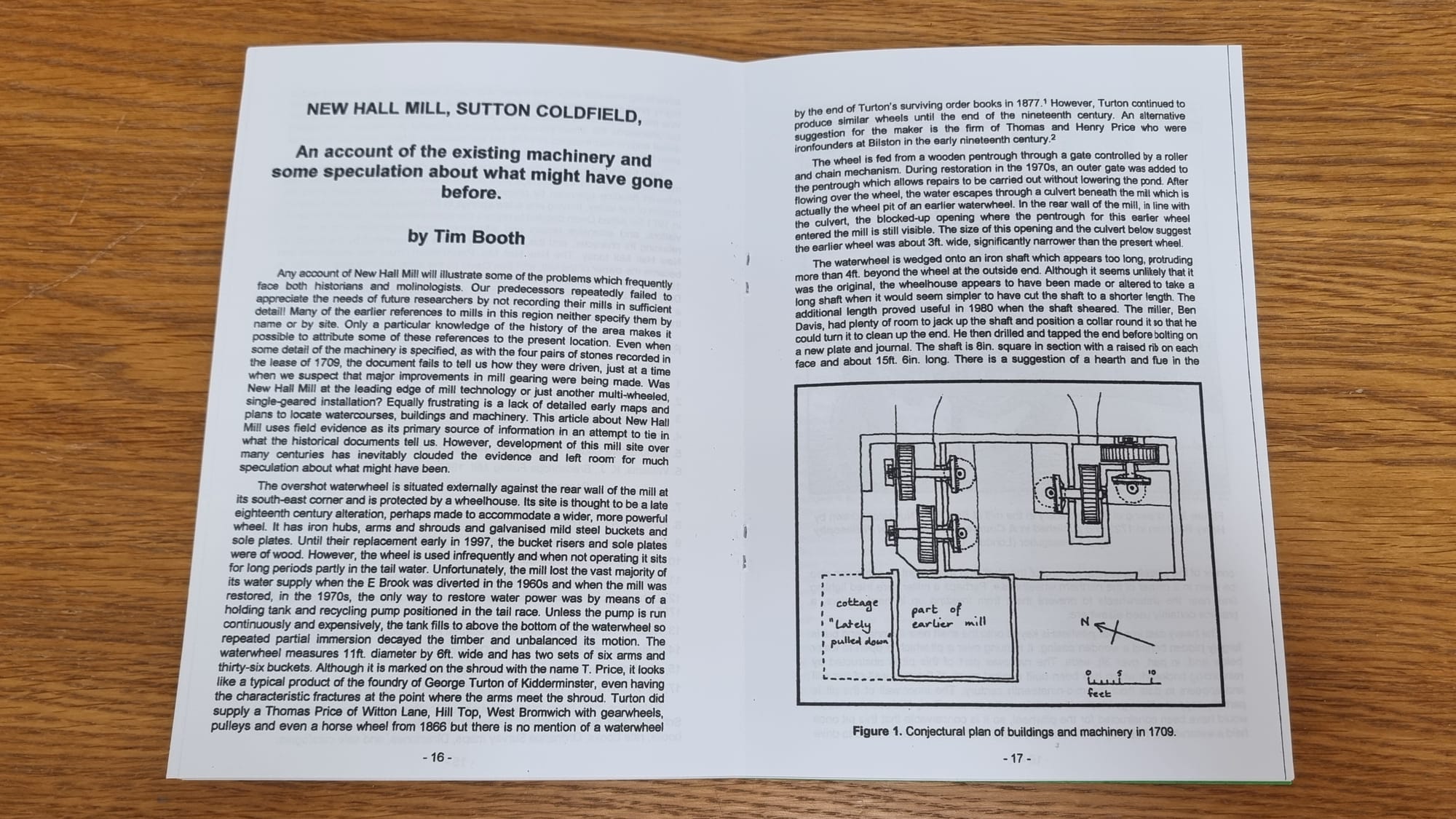 New Hall Mill Sutton Coldfield is a 32-page booklet which comprises two sections, "A History" by Roger Lea, and "An Account of the Machinery" by Tim Booth. The content was reprinted from two detailed and insightful articles originally published in "Wind and Water Mills, Number 17," the Journal of the Midland Wind and Water Mills Group. These articles represent a wealth of research and personal dedication, capturing the human story, the industrial archaeology, and the technical ingenuity behind New Hall Mill.