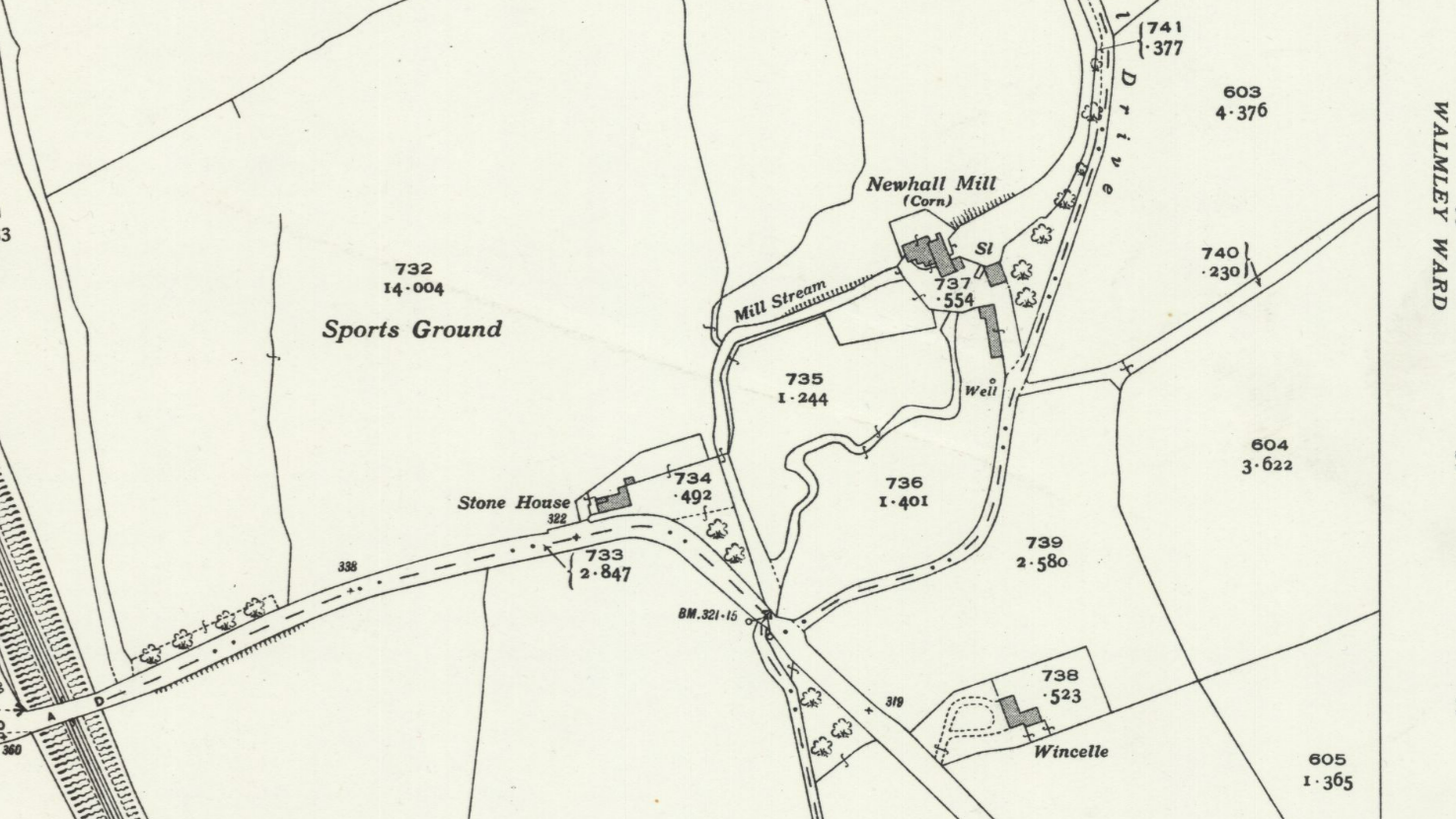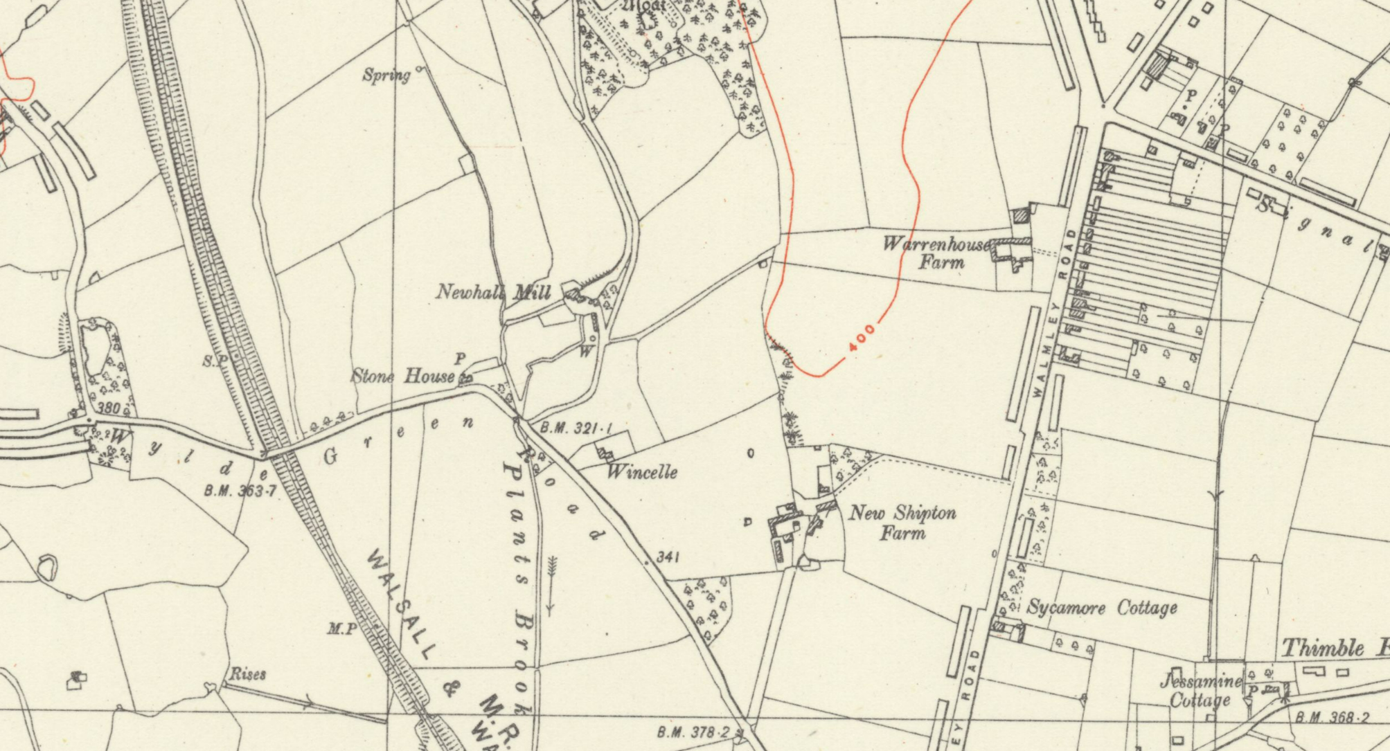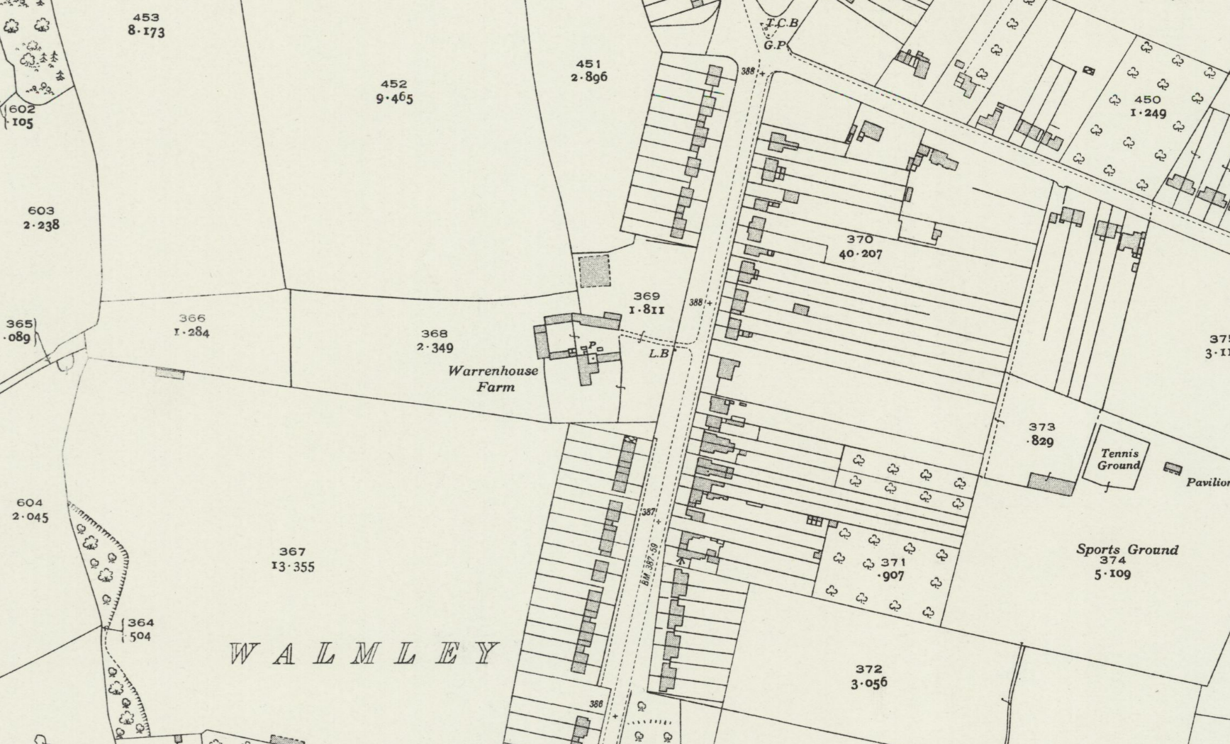 The land immediately behind the Mill was part of Warren House Farm. The farmhouse was (and still is) between 189 and 191 Walmley Road, yet no household is listed here in the 1939 Register. Perhaps it was empty in 1939.