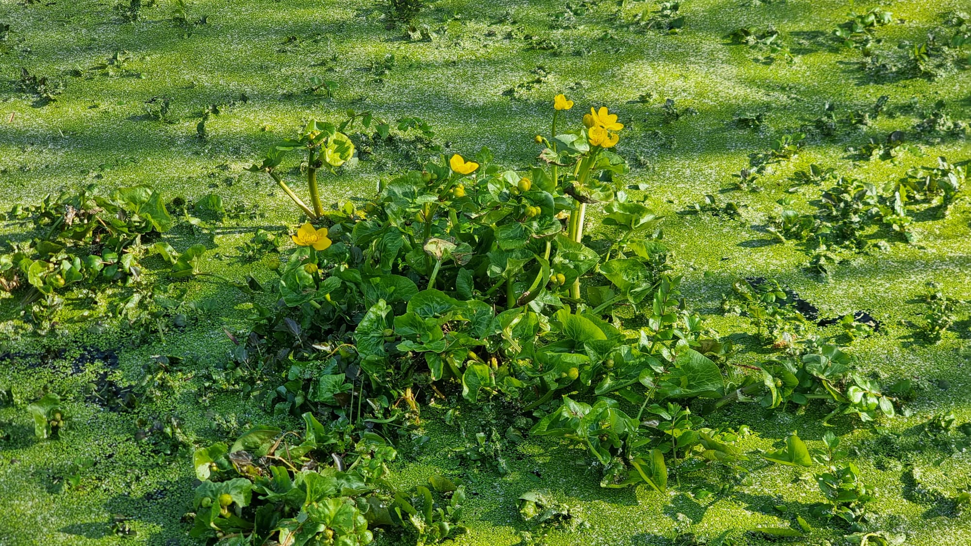 In February the marsh marigolds (Caltha Palustris) begin to bloom. The photo below shows them in March 2025.