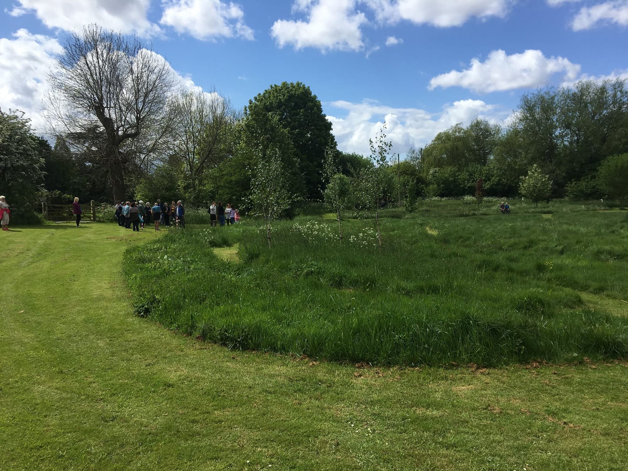 The second part of the meadow, across the stream footbridge, features at its centre a beautiful 'labyrinth' of wild flowers intersected by mown paths. The paths in the meadow enable visitors to see numerous plants that may be in flower, depending on the time of the year and the weather.