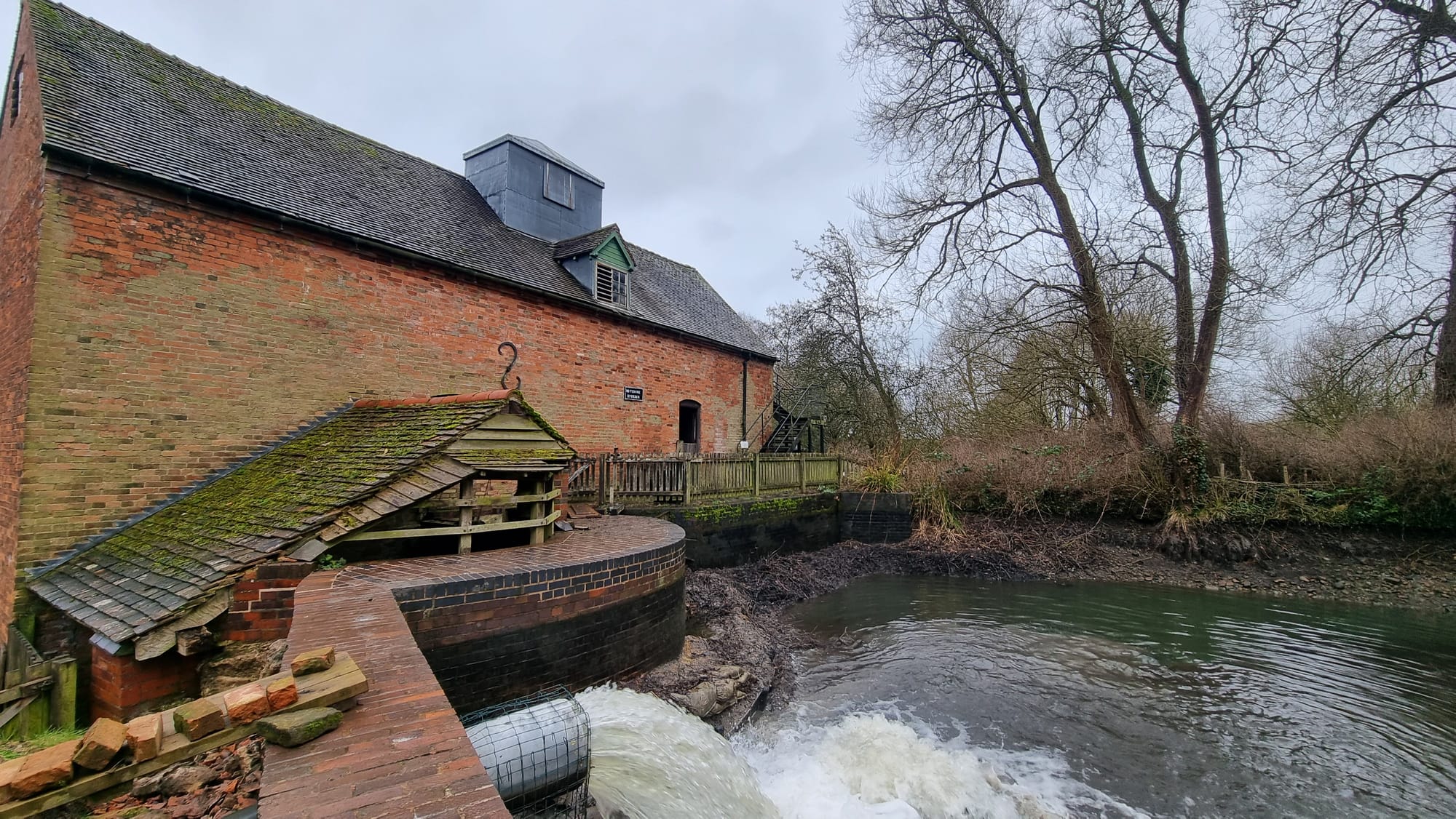 Although the mill pond still survives, New Hall Mill lost the water supply from the Ebrook into the mill pond when a river realignment was undertaken. In 1969 - 1971 parts of the Ebrook were diverted to a new watercourse to prevent flooding problems in Sutton Coldfield. Unfortunately it also stopped the flow from the Ebrook into the mill pond.