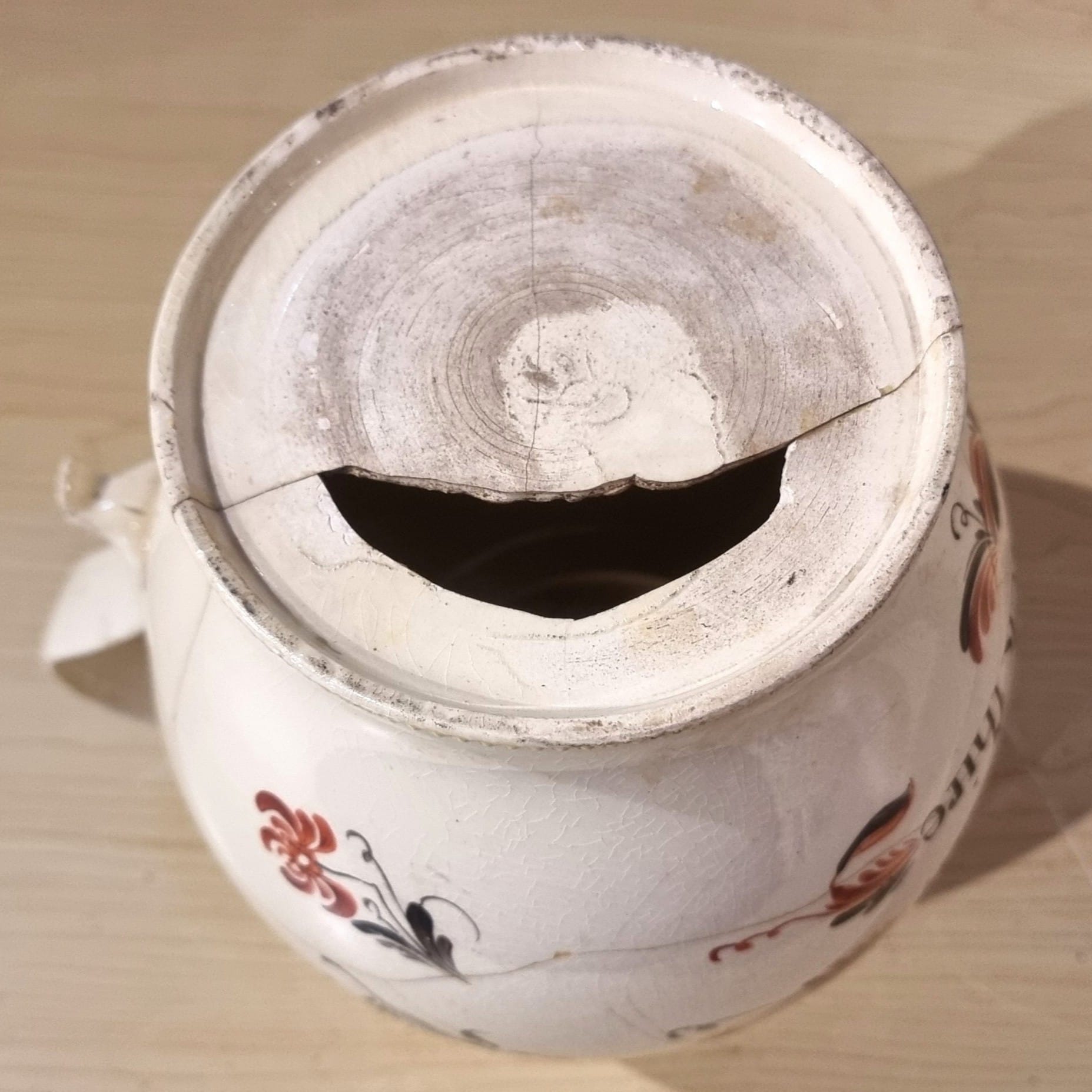 "So it was that, on Sunday 5th April, I drove to Bedford to collect the jug rather than entrusting it to parcel post. That proved to be a wise decision as the jug had already been dropped and broken into many pieces fairly recently. Although carefully repaired, it now has a sizeable hole in its base.
